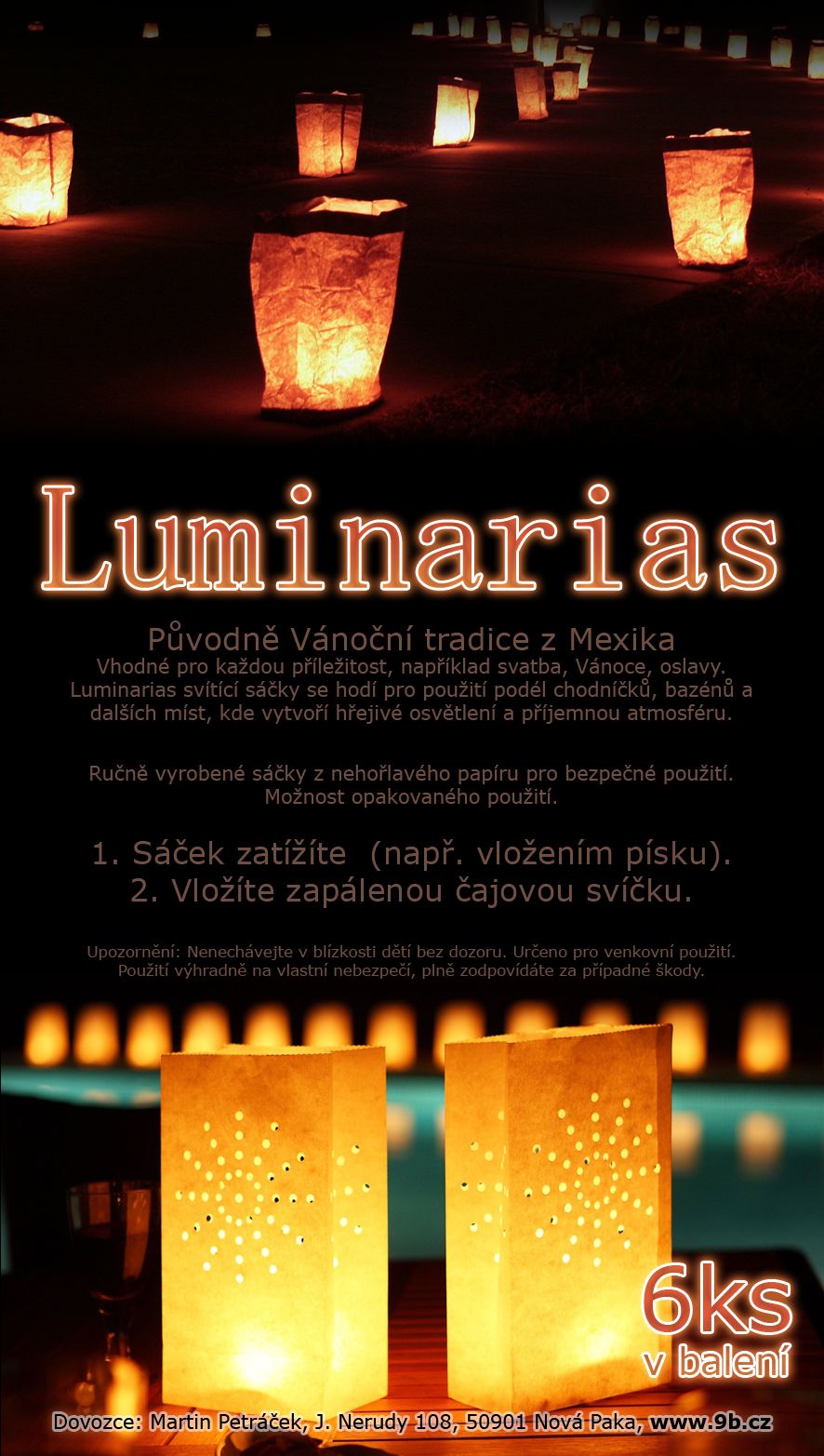 Luminarias, původně vánoční tradice z Mexika se nyní používá po celém světe, při oslavách, svatbách, večírcích jako ozdoba lemování cest, bazenů a dalších míst, kde vytvoří příjemné hřejivé osvětlení a příjemnou atmosféru.